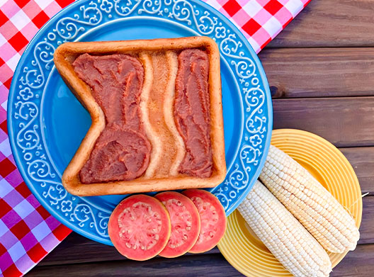 Bandeirinha de bolo de milho com goiabada para turma toda!! Ingredientes naturais para crianças e bebes maiores de 9 meses! Milho, flocão de milho, leite de coco, uva passa, aveia e fermento. Para (a melhor) goiabada, apenas goiaba, tâmara e maçã! Contém ovo.